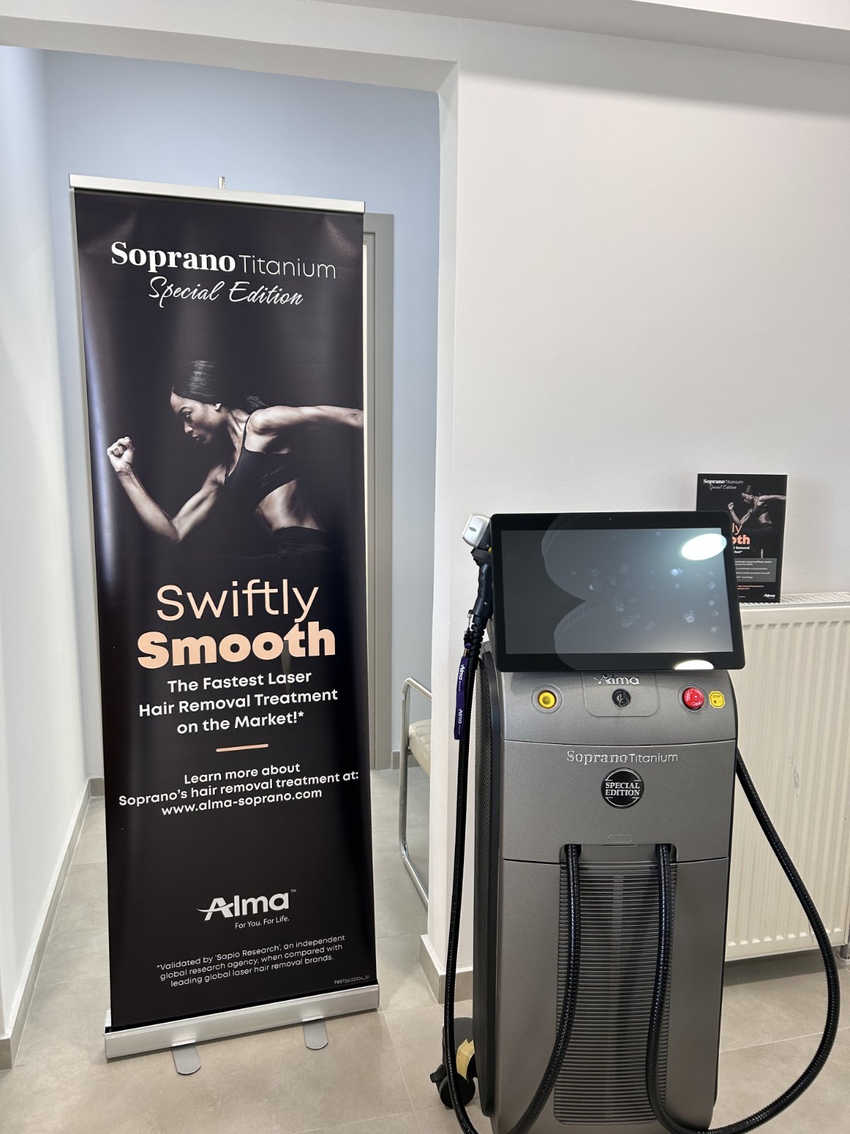 Η ενσωματωμένη τεχνολογία συνεχούς ψύξης διατηρεί την επιφάνεια του δέρματος σε ελεγχόμενη θερμοκρασία καθ’ όλη τη διάρκεια της συνεδρίας.